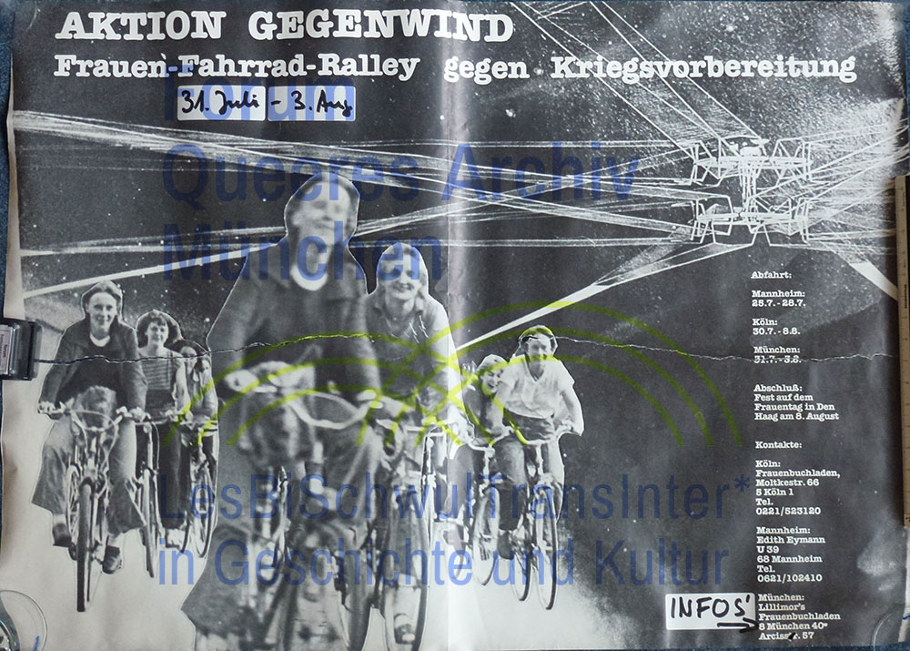 Schlagwörter: Antikriegsdemo, Aufrüstung, Demonstration, Edith Eymann, Feminismus, Frauenbuchladen, Friedensbewegung, Köln, Krieg, Lesben, Lillemor's, Mannheim, München, Politik, Rallye