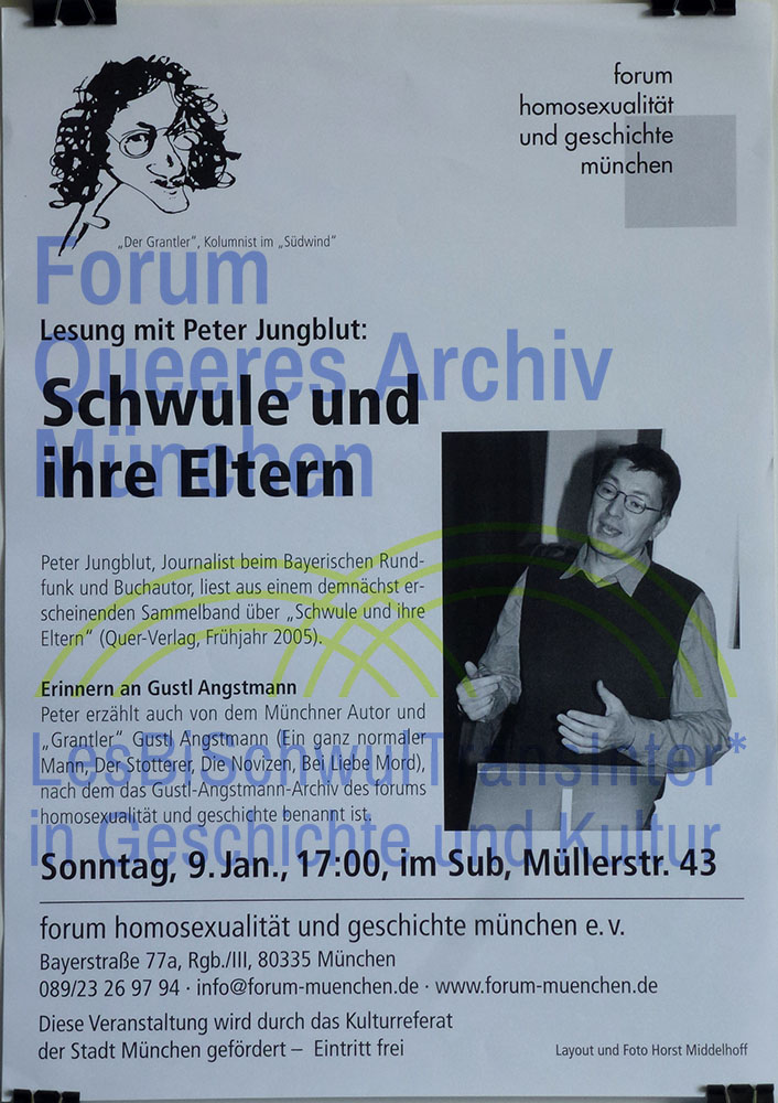 Schlagwörter: Coming Out, Eltern, Forum, Gustl Angstmann, Lesung, Literatur, München, Peter Jungblut, Schwule