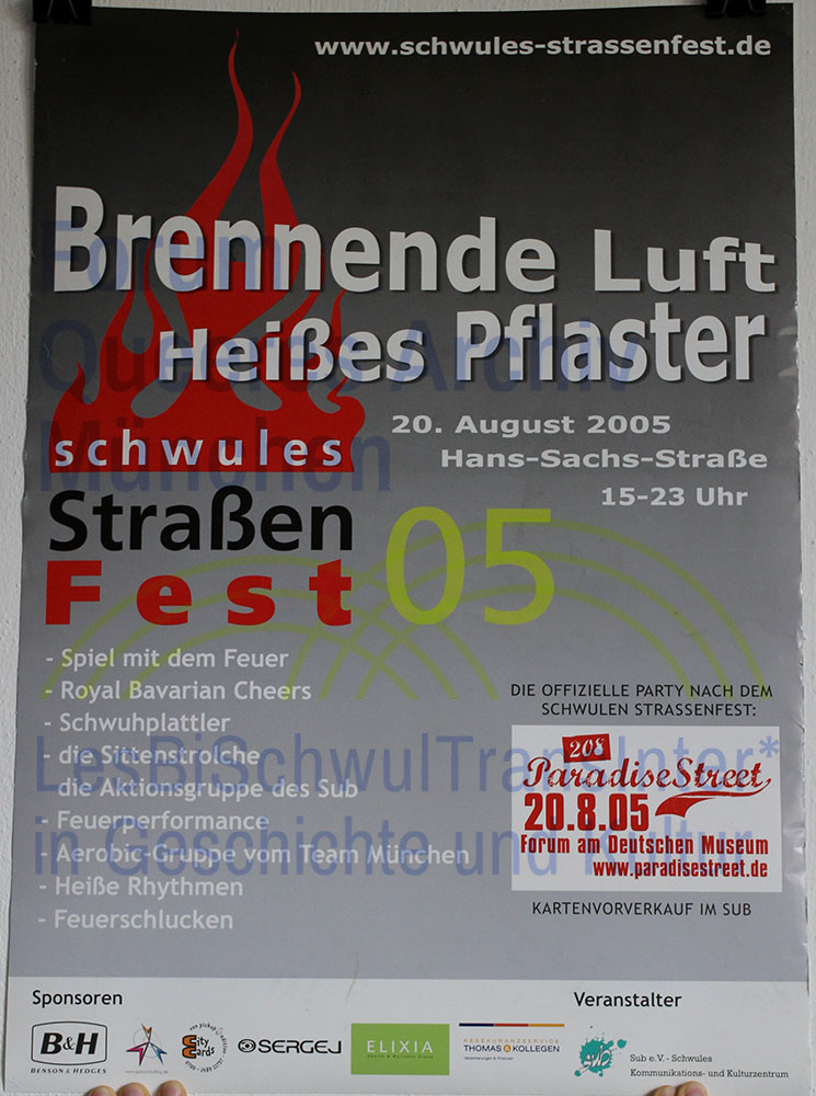 Schlagwörter: Forum am Deutschen Museum, Hans-Sachs-Straße, München, Party, Royal Bavarian Cheers, Schwuhplattler, Schwule, Sittenstrolche, Straßenfest, SUB, Team München